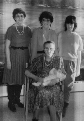 5 GENERATIONS from left to right: Rose Aimee Arbour (Doyle), Irene Doyle (Gagnon), Johanne Gagnon, sitting: Adeline Poirier (Arbour) and on her knee, Michelle Melanie McGrath 1967